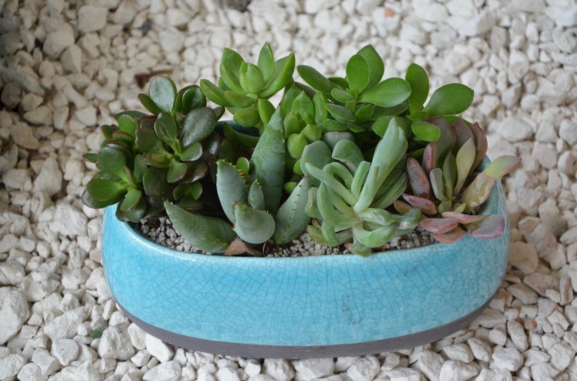 - Sukulen kecil: seperti echeveria, sedum, atau haworthia yang memiliki daun kecil dan warna cerah bisa memberikan kontras yang menarik.